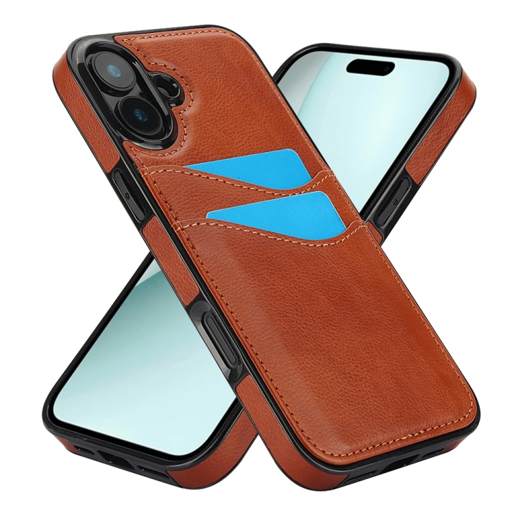 Funda para Teléfono Piel de Lichi iPhone 16 Ranuras para Tarjetas (Marrón)
