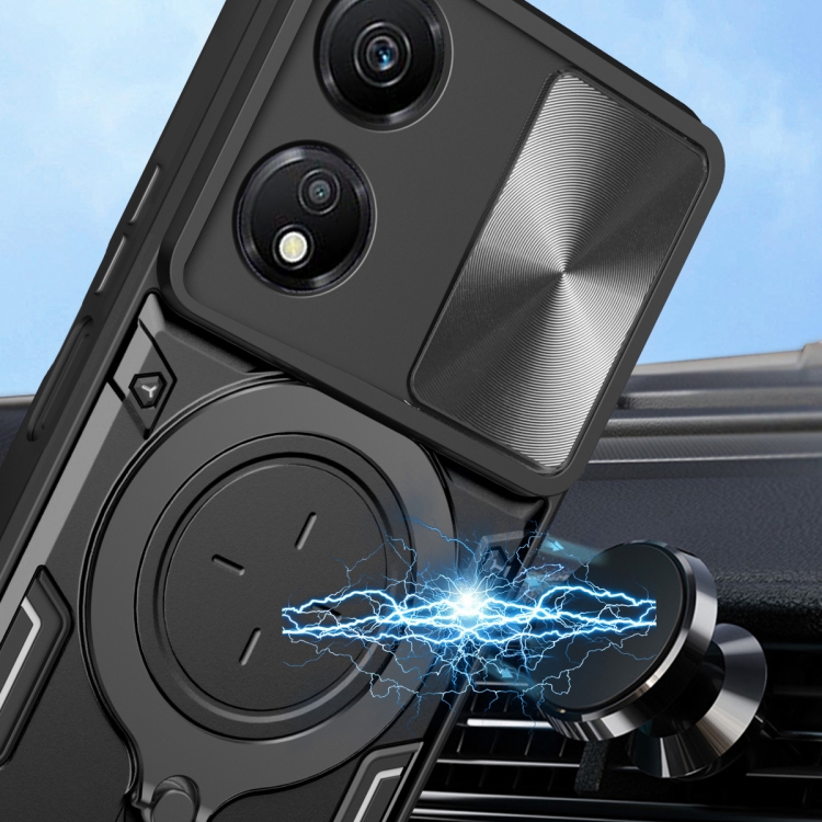 Funda para Teléfono Honor X5 Plus con Soporte Magnético Deslizante y Textura de Cd (Rojo)