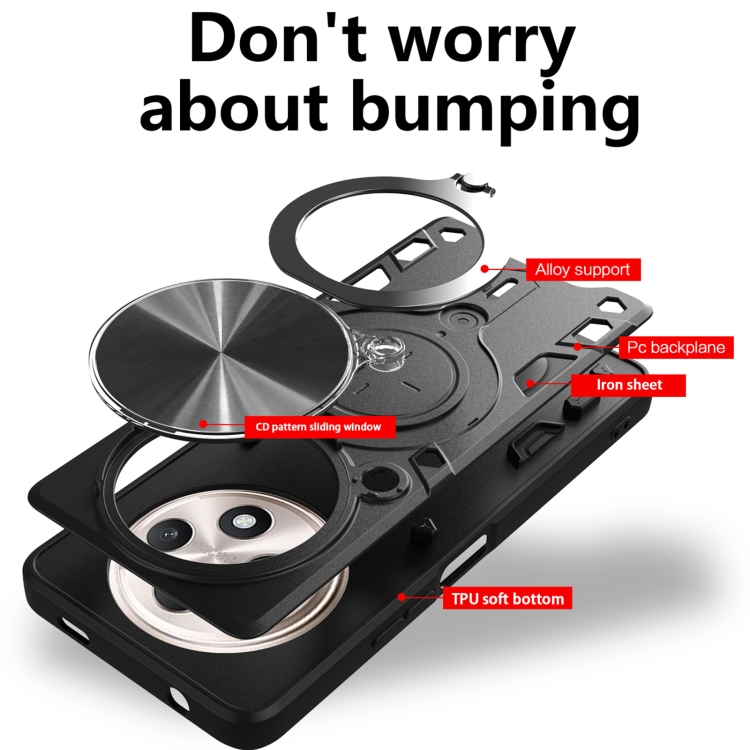 Funda para Teléfono con Soporte Magnético Deslizante con Textura de Cd para Oppo Reno12 F 5G (Morado)