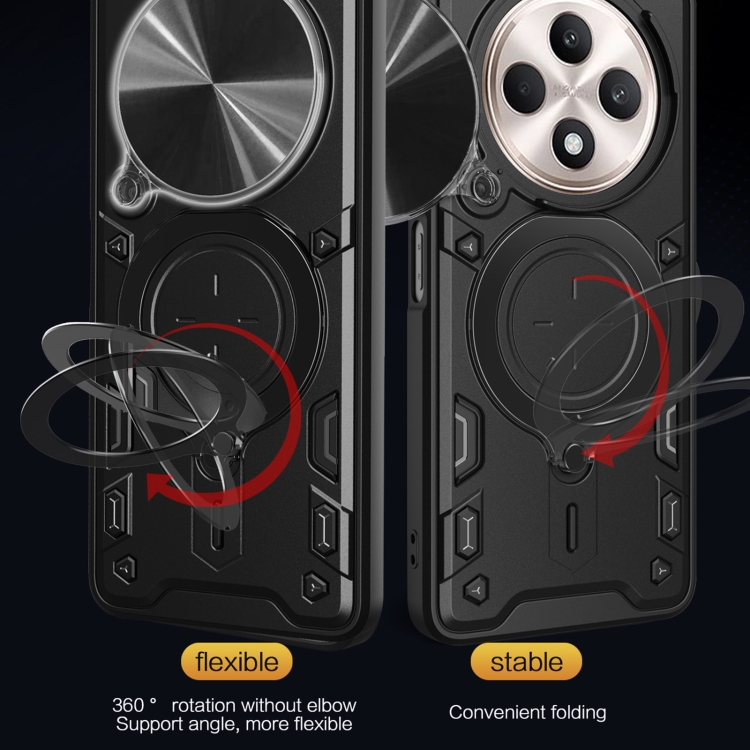 Funda para Teléfono con Soporte Magnético Deslizante con Textura de Cd para Oppo Reno12 F 5G (Negro)