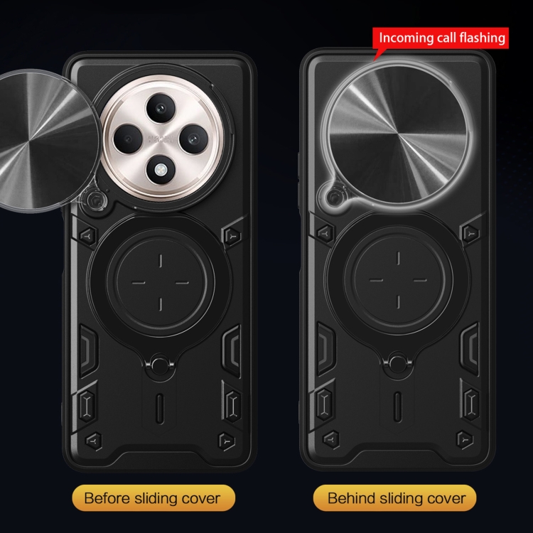 Funda para Teléfono con Soporte Magnético Deslizante con Textura de Cd para Oppo Reno12 F 5G (Plateada)