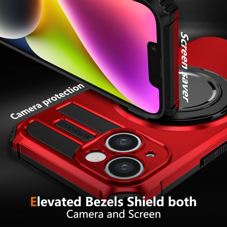 Funda para Teléfono iPhone 13 con Soporte Magnético Giratorio (Rojo)