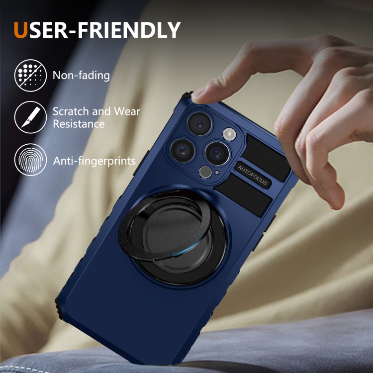 Funda para Teléfono iPhone 14 Pro Soporte Magnético Giratorio (Azul Real)