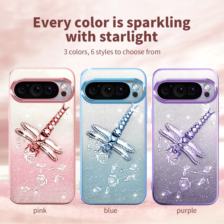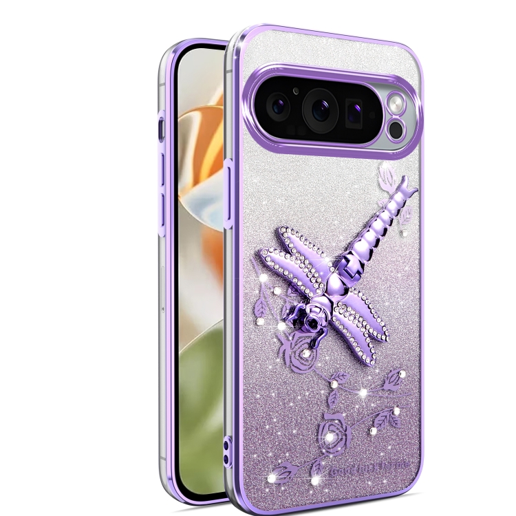 Funda para Teléfono Google Pixel 9 Pro XL con Soporte Libélula 3D Purpurina Degradada (Morado)