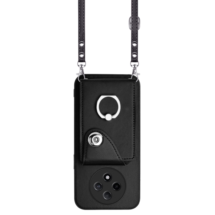 Funda para Teléfono con Soporte para Tarjetas y Anillo para Oppo A3 Pro 5G con Cordón Largo (Negro)