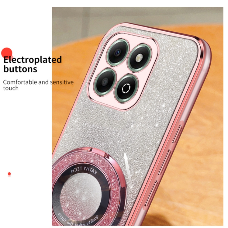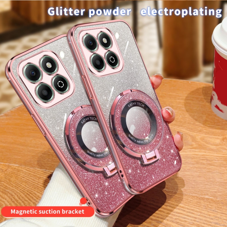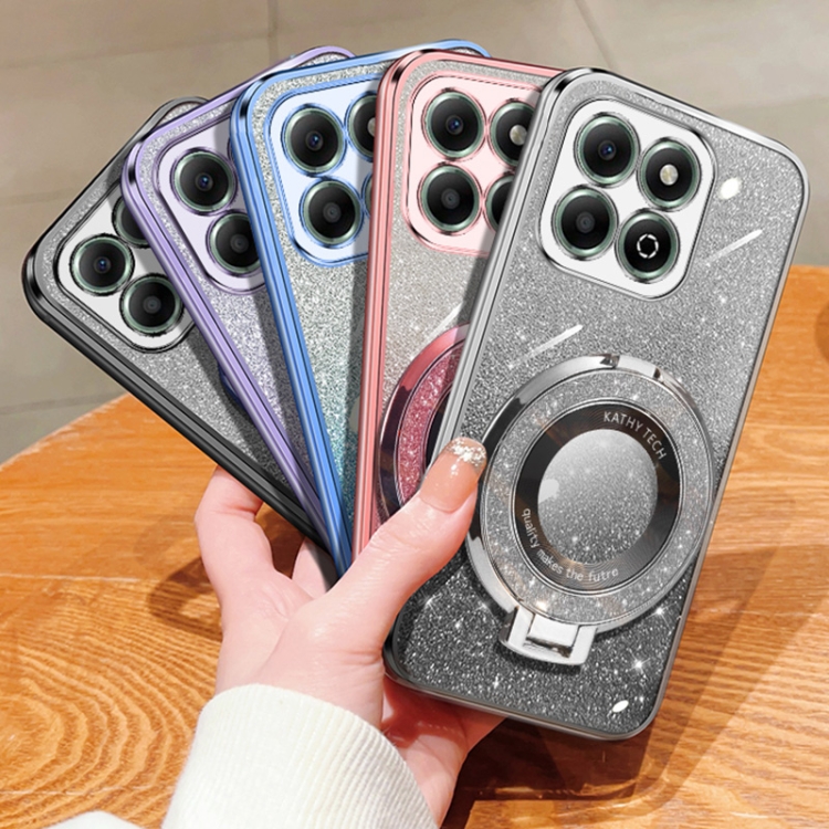 Funda para Teléfono Honor X6B TPU con Soporte Redondo y Purpurina Degradada (Plateada)
