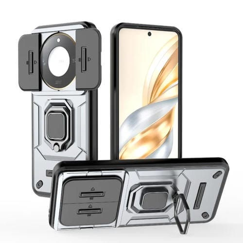 Funda para Honor X60 5G con Soporte y Carcasa Deslizante TPU y PC (Gris)