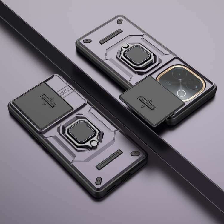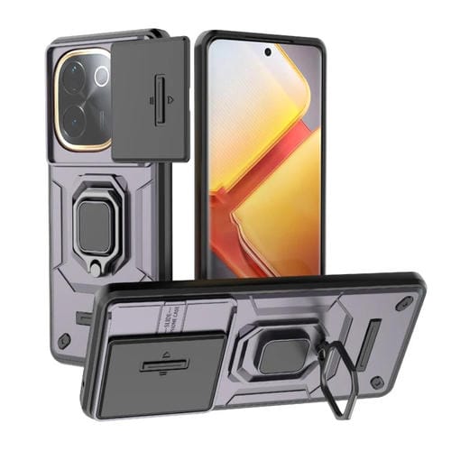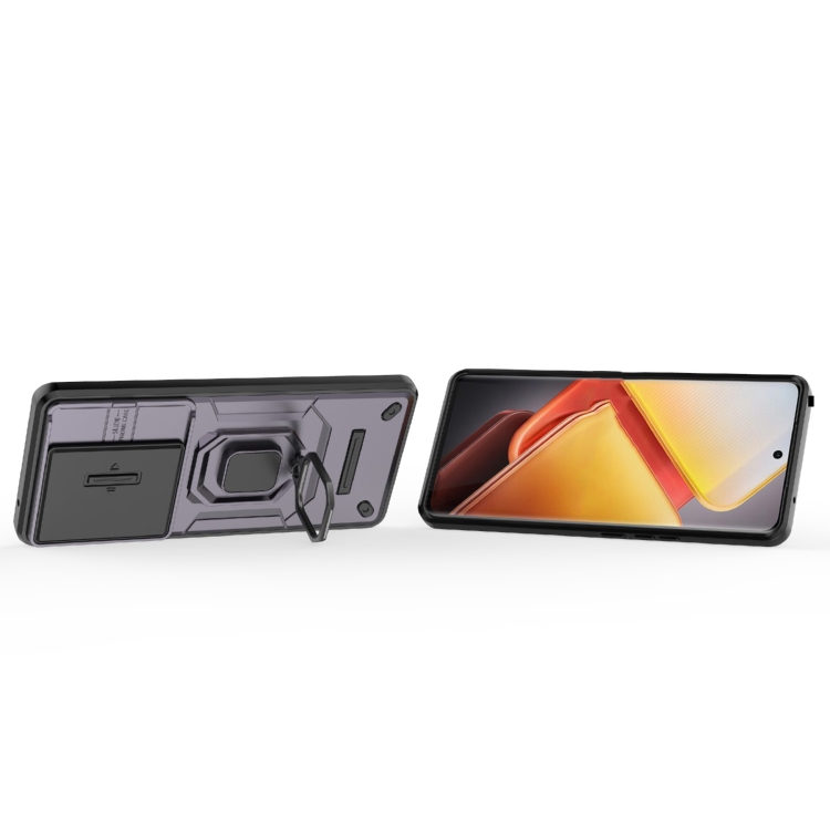 Funda Protectora de TPU + PC con Soporte para Vivo Iqoo Z9S Pro 5G, con Diseño Deslizante y Antigolpes (Morado)
