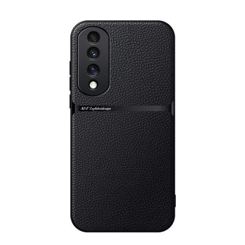 Funda para Teléfono Honor 70 Pro con Tapa Magnética Cuero de Lichi a Prueba de Golpes (Negro)