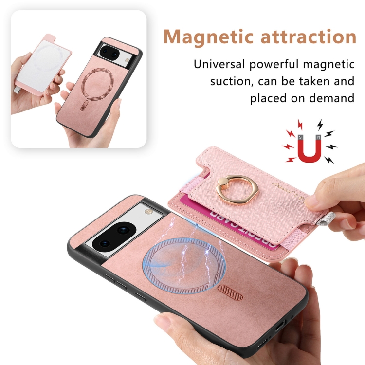 Funda para Teléfono Google Pixel 8A con Tapa Trasera Magnética de PU Magsafe (Rosa)