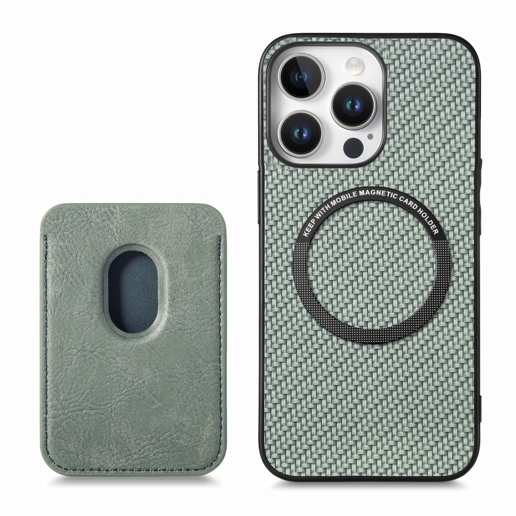 Funda para Teléfono con Tarjetero Cuero Fibra de Carbono y Magsafe iPhone 16 Pro (Verde)