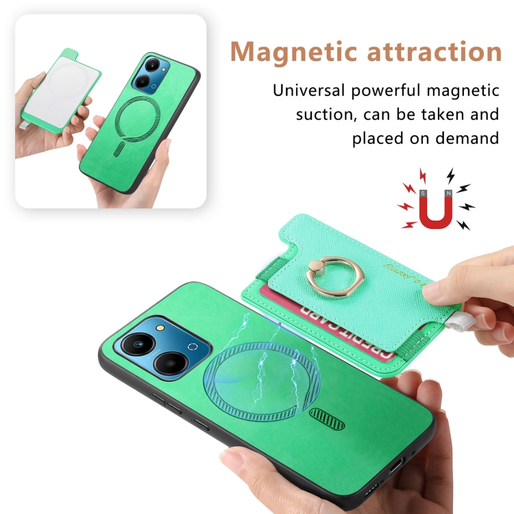 Funda para Teléfono Honor 90 GT 5G con Tarjetero y Anillo Cuero Retro Magsafe (Verde)