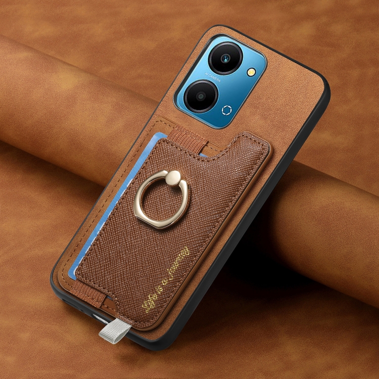 Funda para Teléfono Honor X50I con Tarjetero y Anillo Cuero Diseño Retro Magsafe (Marrón)