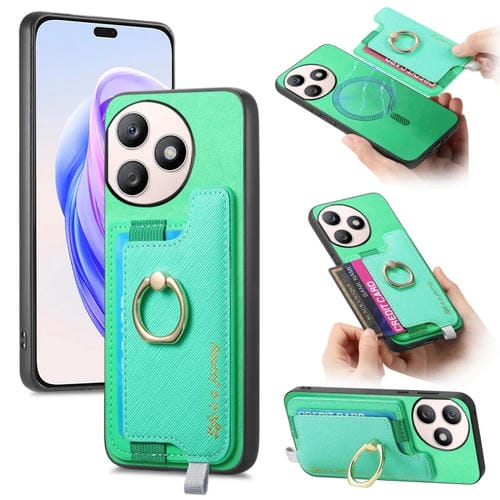 Funda para Teléfono Honor X50I+ con Tarjetero y Anillo Cuero Retro Magsafe (Verde)