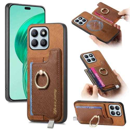 Funda para Teléfono Honor X8B con Tarjetero y Anillo de Cuero Retro Magsafe Cross (Marrón)