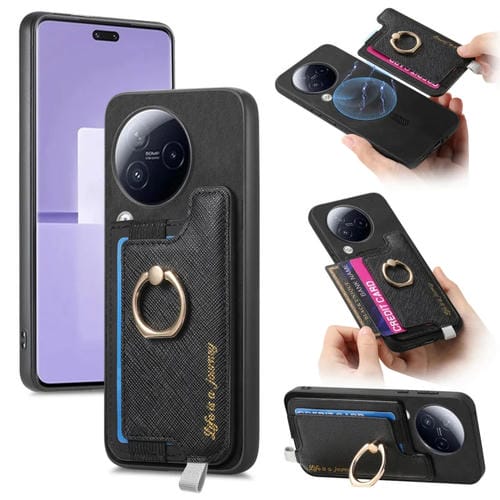 Funda para Teléfono con TaRJetero y Anillo de Cuero con Diseño Retro Magsafe Cross para Xiaomi Civi 3 5G (Negro)