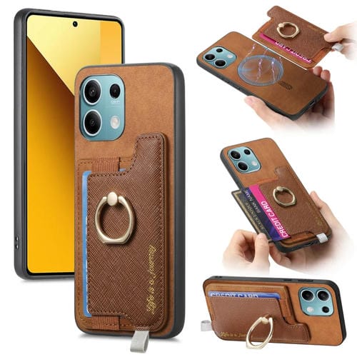 Funda para Teléfono con TaRJetero y Anillo de Cuero con Diseño Retro Magsafe Cross para Xiaomi Redmi Note 13 5G (Marrón)