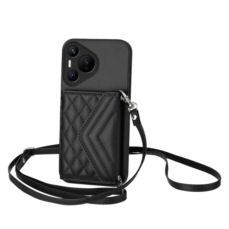 Funda para Teléfono Huawei Pura 70 con Textura Rombal y RFID con Cordón Largo (Negro)