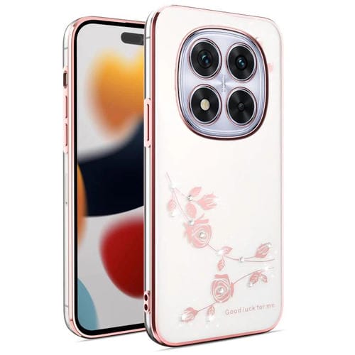 Funda para Teléfono con Todo Incluido y Diseño de Flores y Diamantes Brillantes para Xiaomi Redmi Note 14 Pro 5G (Rosa)