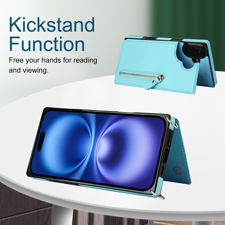 Funda para Teléfono Cuadrada con Cremallera y Diseño Cruzado para iPhone 16 (Verde)