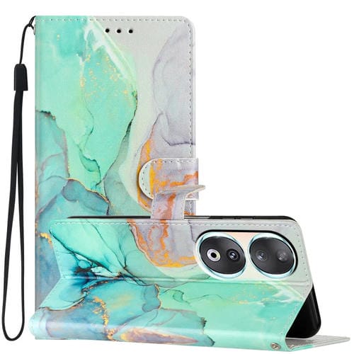 Étui de téléphone en cuir de dessin coloré pour Honor 90 (marbre vert)