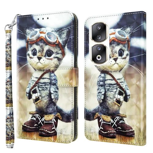 Funda para Teléfono Honor 90 Pro Cuero Pintado 3D Gato Travieso