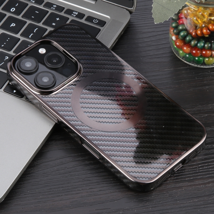 Funda para Teléfono PC iPhone 16 Pro Max Protección Magsafe Fibra Carbono 6D (Gris Titanio)