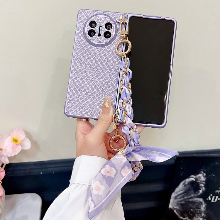 Funda para Teléfono Huawei Mate X3/X5 con Diseño de Rombos y Diamantes Brillantes y Pulsera de Seda (Morado)
