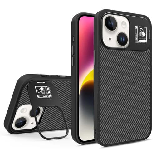 Funda para Teléfono Magsafe Fibra de Carbono con Soporte Plegable para iPhone 14 Plus (Negra)