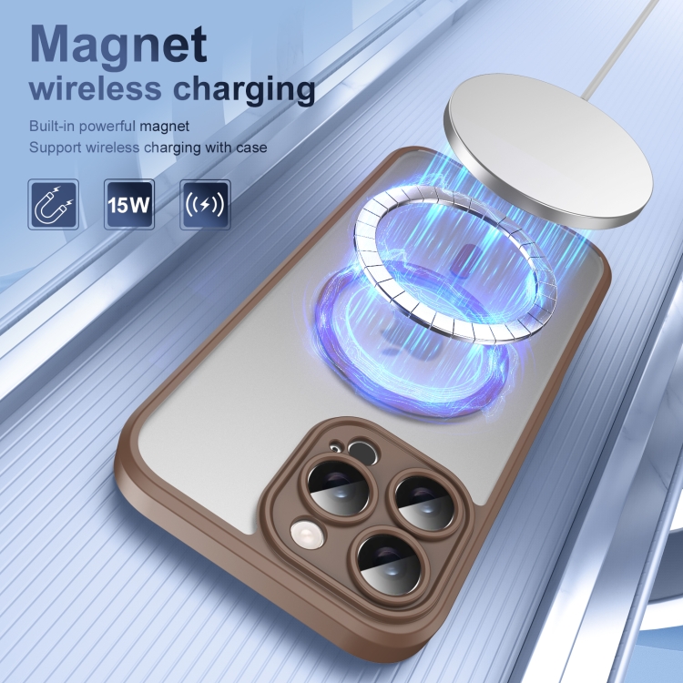 Funda para Teléfono Magsafe Translúcida Esmerilada con Botón Ai para iPhone 16 Pro Max (Dorada)