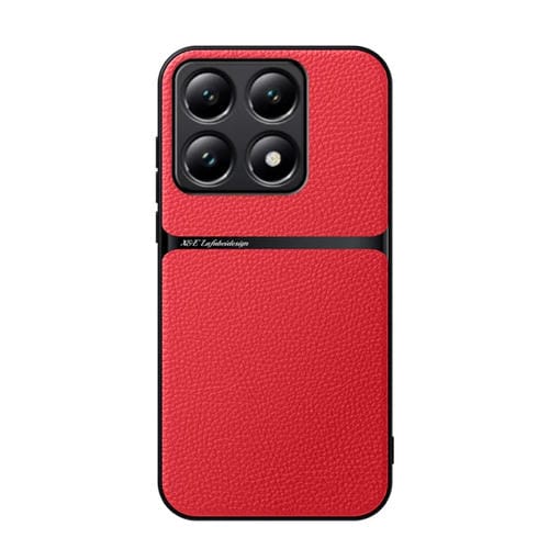Funda Para Teléfono Xiaomi 14T De Piel De Lichi Con Cobertura Total Magnética Y A Prueba De Golpes (Roja)