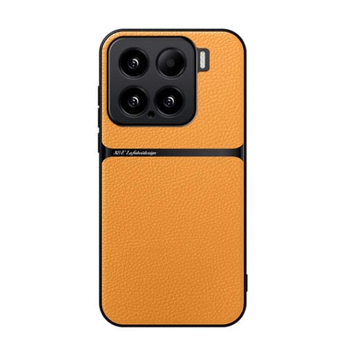 Funda Para Teléfono Xiaomi 15 Litchi De Cuero Con Cobertura Total Magnética A Prueba De Golpes (Amarillo)