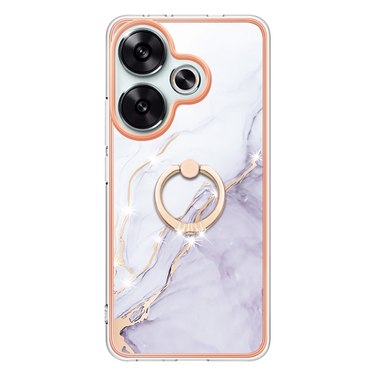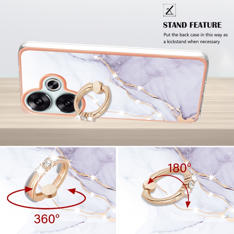 Funda para Teléfono Xiaomi Poco F6 5G con Galvanoplastia de Mármol Imd TPU y Soporte para Anillo (Blanco 006)