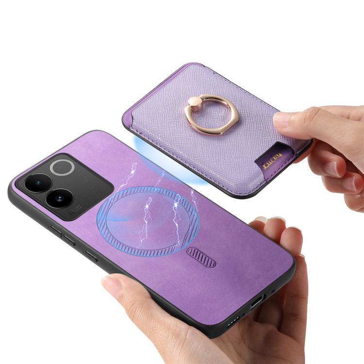 Funda para Vivo Iqoo 11 Pro 5G con Anillo de Cuero Retro Cruzado y Ranuras para Tarjetas, con Inserción Vertical, Magsafe (Morado)