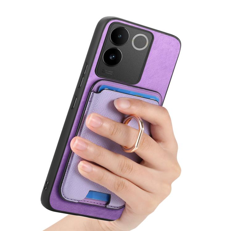 Funda para Vivo S18/S18 Pro 5G con Anillo de Cuero Retro Cruzado, Ranuras para Tarjetas y Ranuras para Tarjetas (Morado)