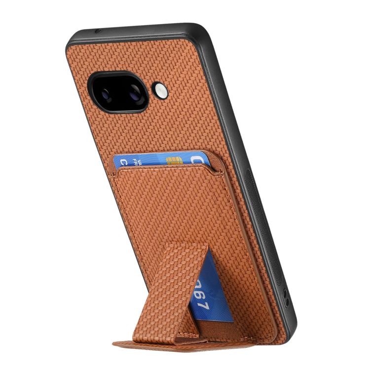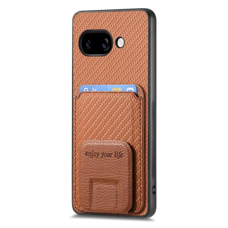 Funda Plegable con Soporte para Tarjetas de Fibra de Carbono para Google Pixel 9A (Marrón)