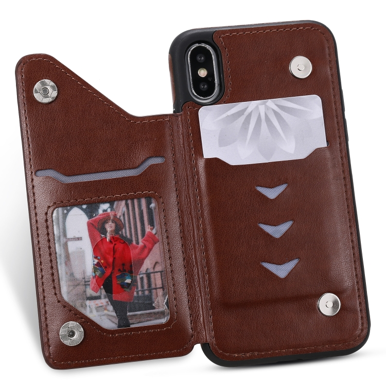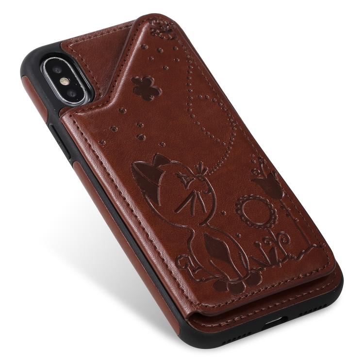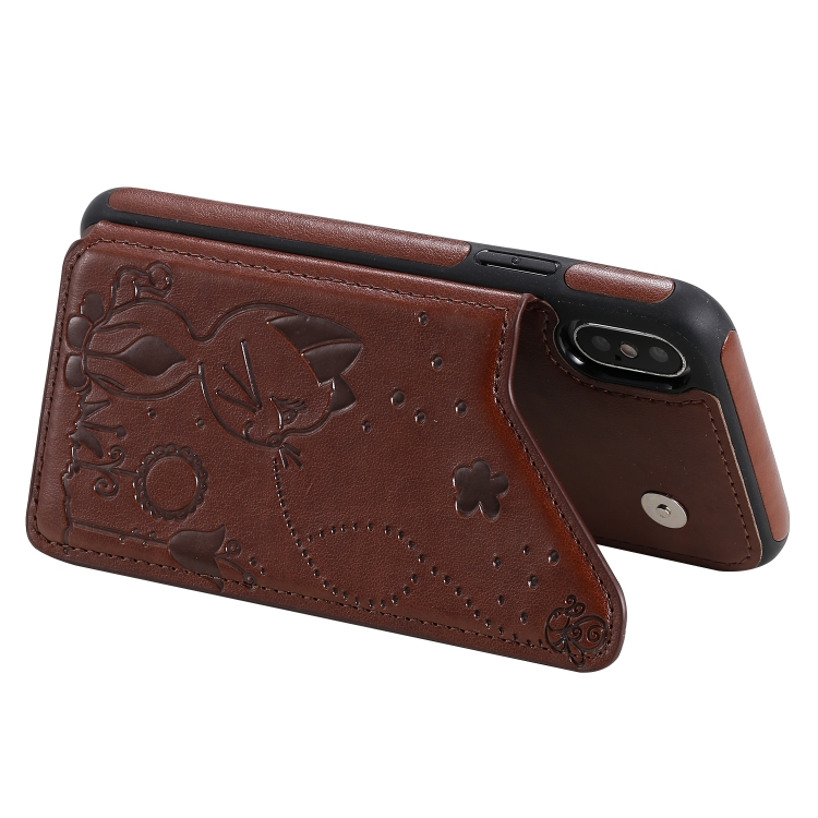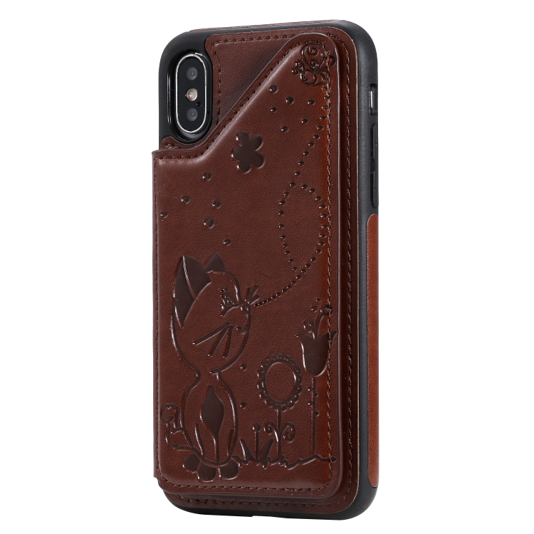Funda Protectora iPhone X Patrón Abeja y Gato Ranuras Tarjetas Marco Fotos (Marrón)