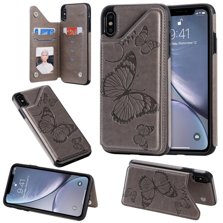 Étui de protection antichoc à motif papillon en relief pour iPhone XS Max avec support, emplacements pour cartes et cadre photo (gris)