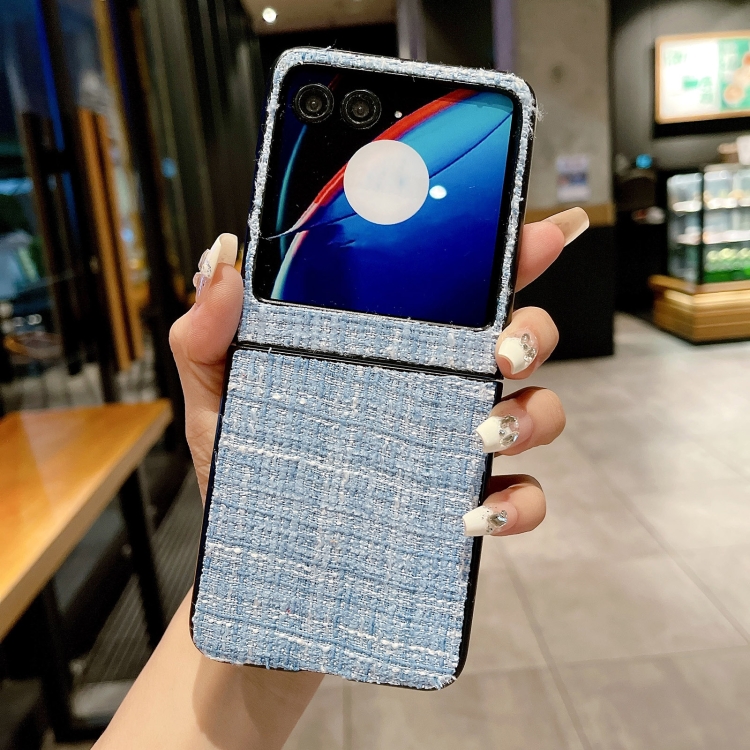 Funda Protectora de Tela a Cuadros para Motorola Razr 40 Ultra (Azul)