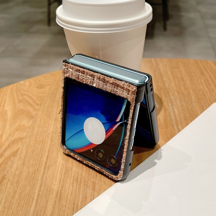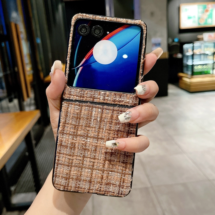 Funda Protectora PC Tela a Cuadros para Motorola Razr 40 Ultra (Marrón)