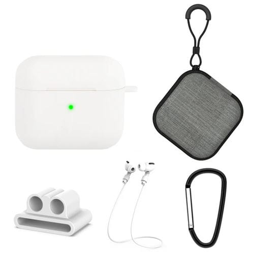 Funda Protectora Silicona 5 en 1 Auriculares Airpods 3 Bolsa Hebilla Gancho Cuerda (Blanco)