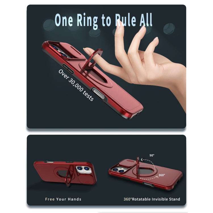 Funda Protectora iPhone 16 Plus con Soporte Anillo Magsafe Camshield (Roja)