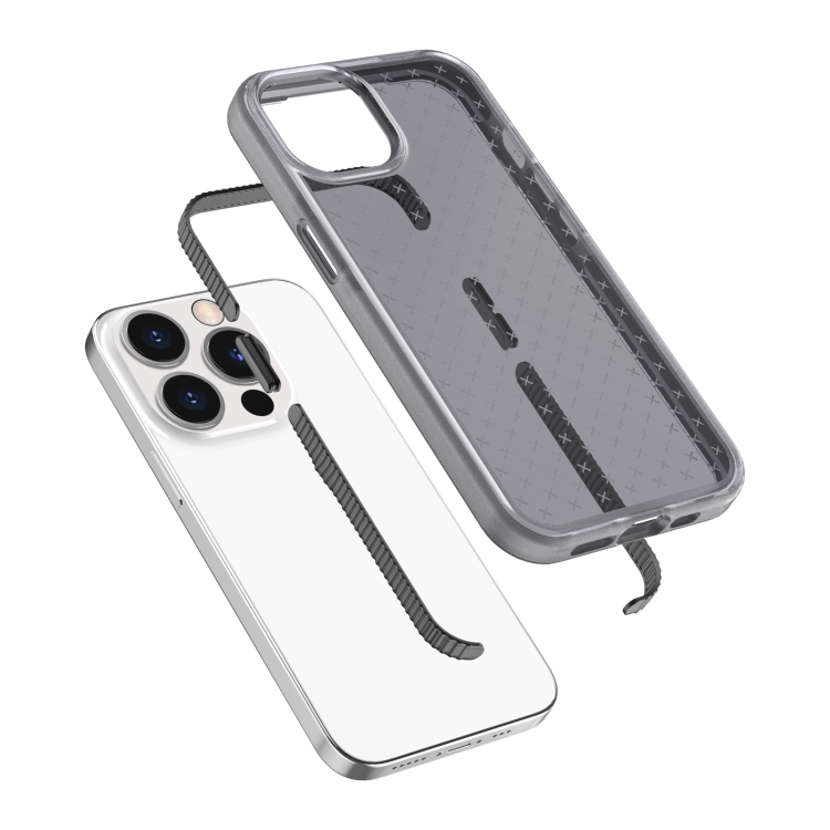Funda Telefónica Transparente iPhone 13 Pro Patrón de Cuadrícula a Prueba de Golpes (Negro)