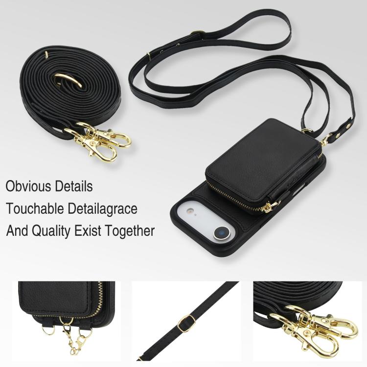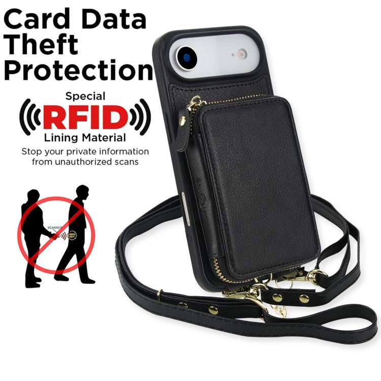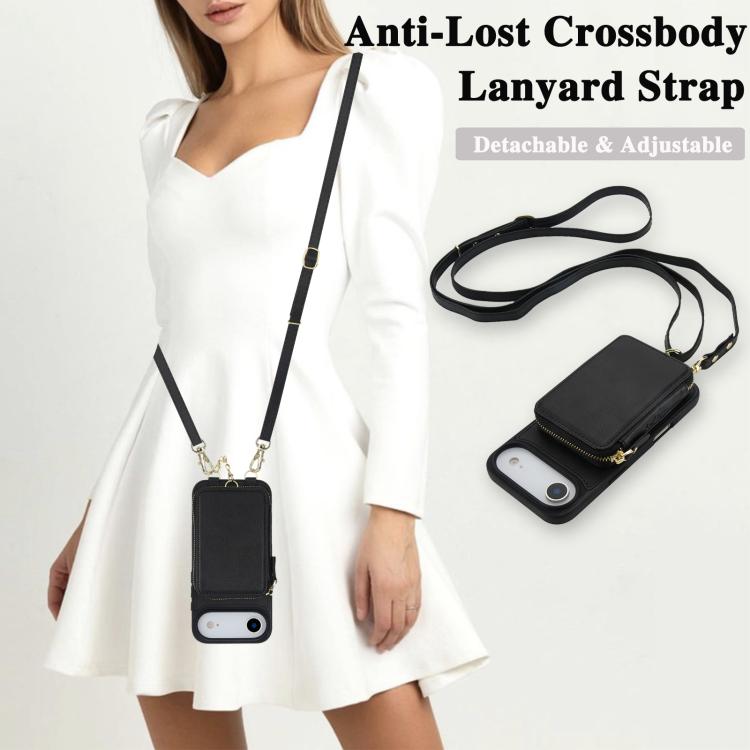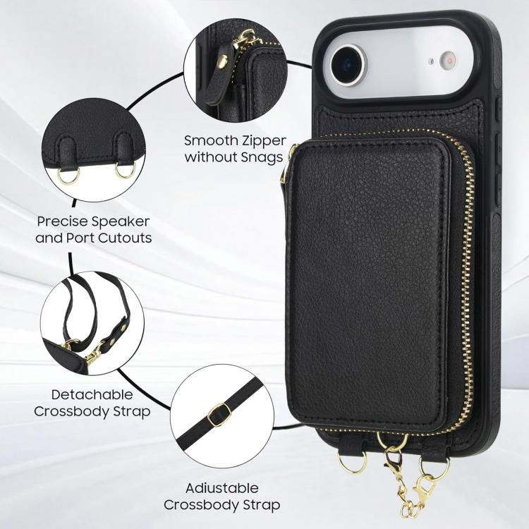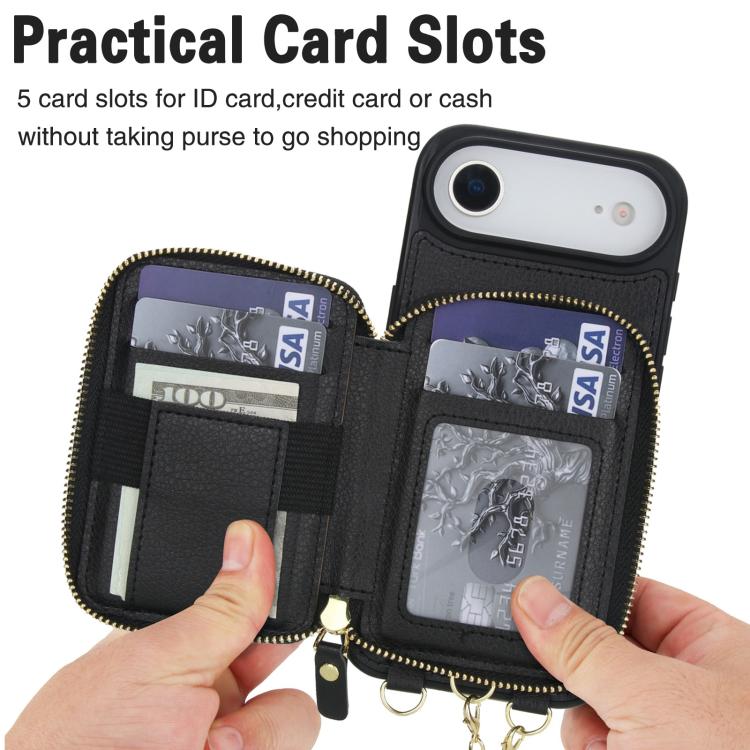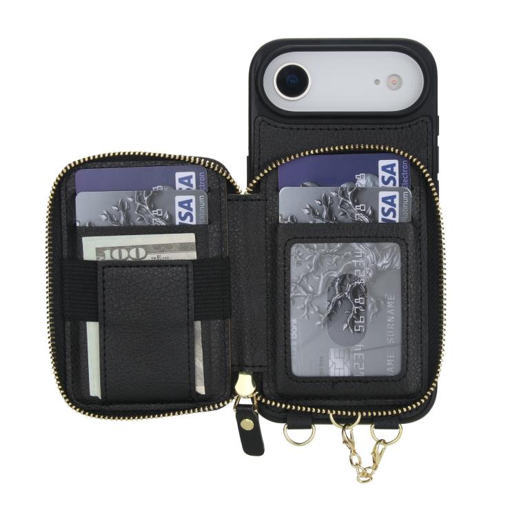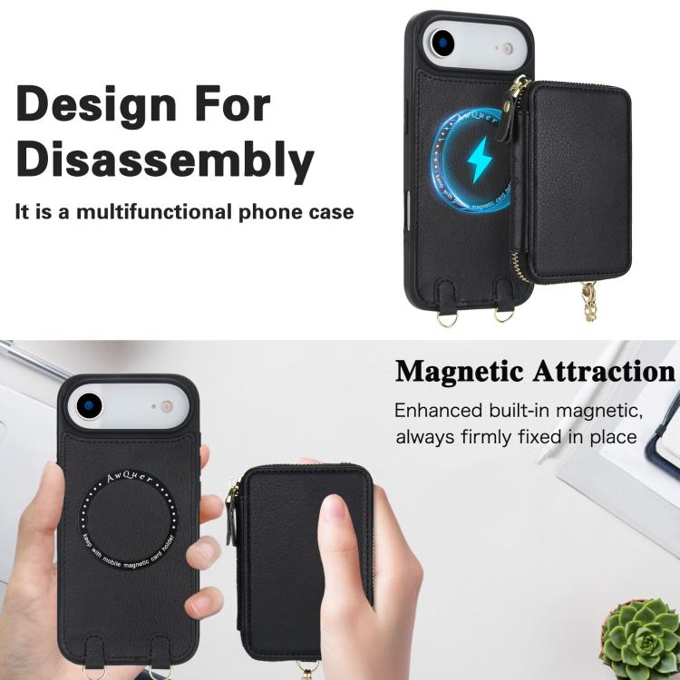 Funda tipo cartera bandolera con cremallera 2 en 1 AwQuer para iPhone Air (negra)