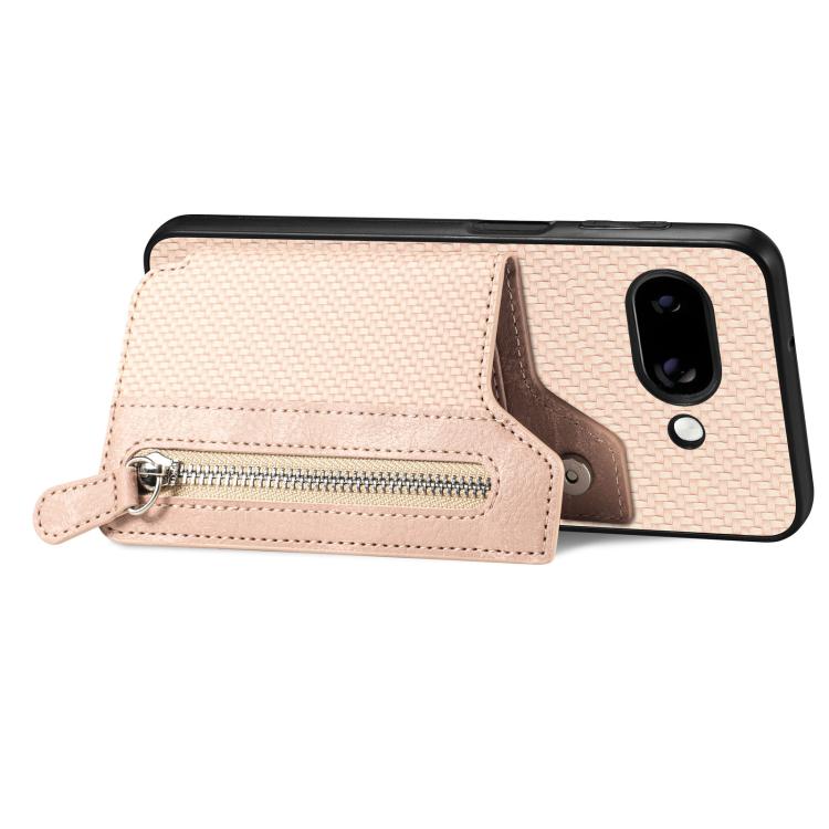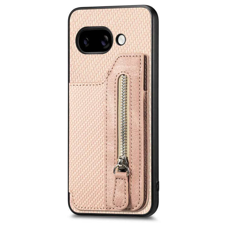 Funda Tipo Cartera con Cremallera y Tapa Fibra de Carbono para Google Pixel 9A (Caqui)