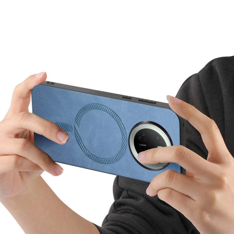 Funda Trasera PU Magsafe para Huawei Mate 70 (Azul) Color Sólido Retro