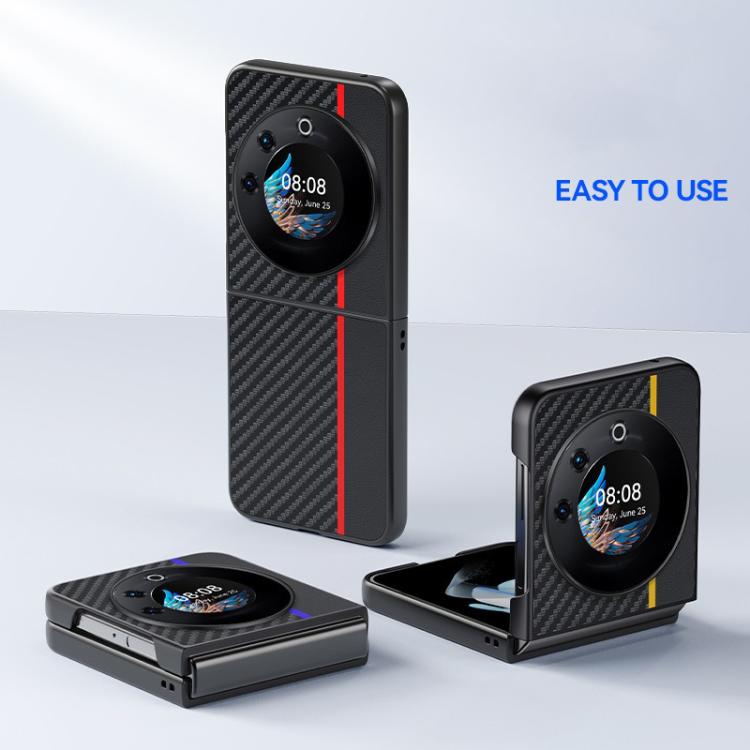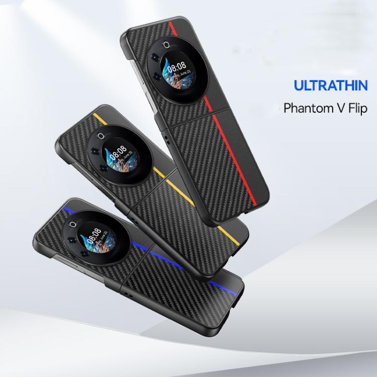 Funda ultrafina con textura de fibra de carbono para Tecno Phantom V Flip (negro y amarillo)