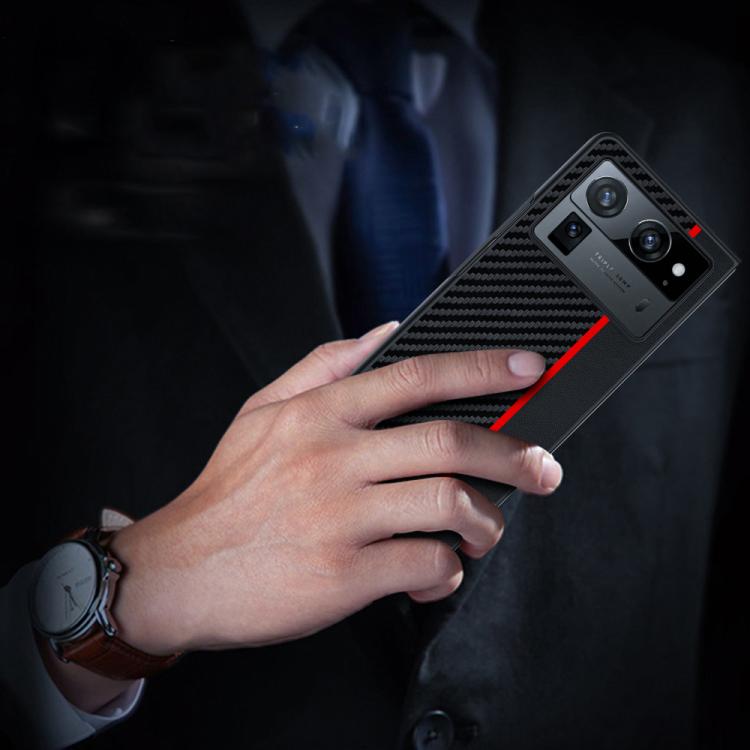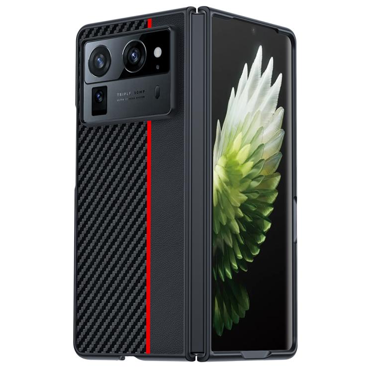 Funda ultrafina con textura de fibra de carbono para Tecno Phantom V Fold2 (negro y rojo)