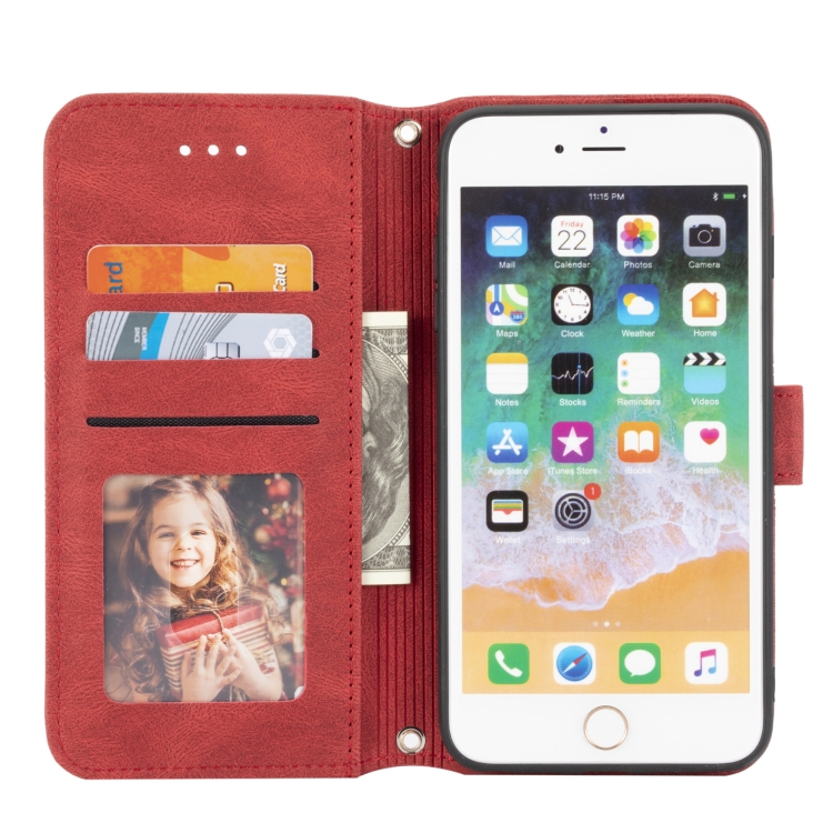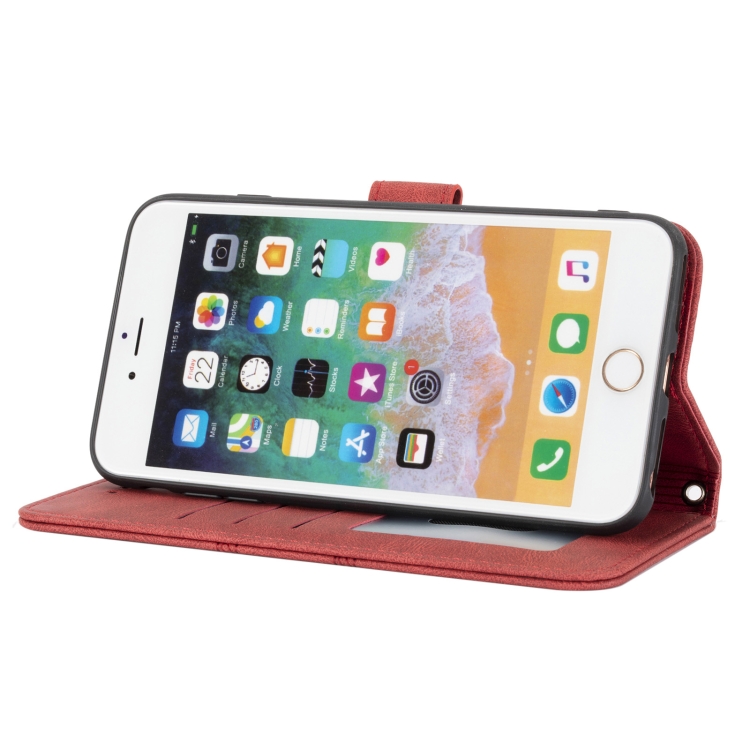 Funda de Cuero Flip Horizontal + Hebilla Magnética PU + TPU para iPhone 8 Plus / 7 Plus / 6 Plus (Rojo)
