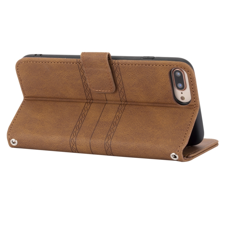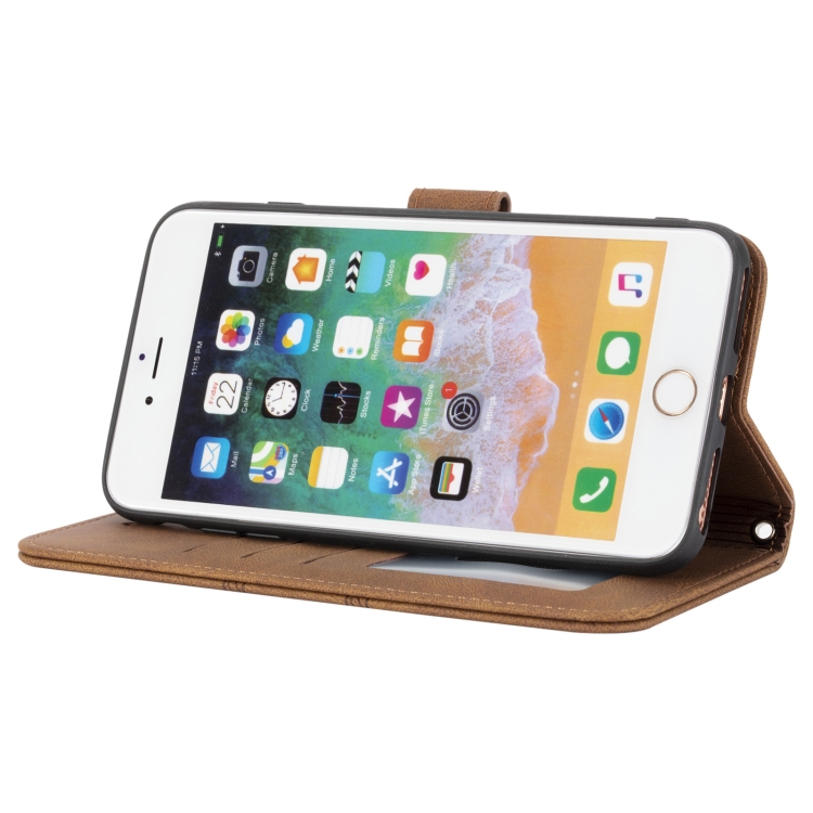 Funda de Cuero Horizontal + Hebilla Magnética PU + TPU para iPhone 8 Plus / 7 Plus / 6 Plus con Soporte y Ranura (Brown)